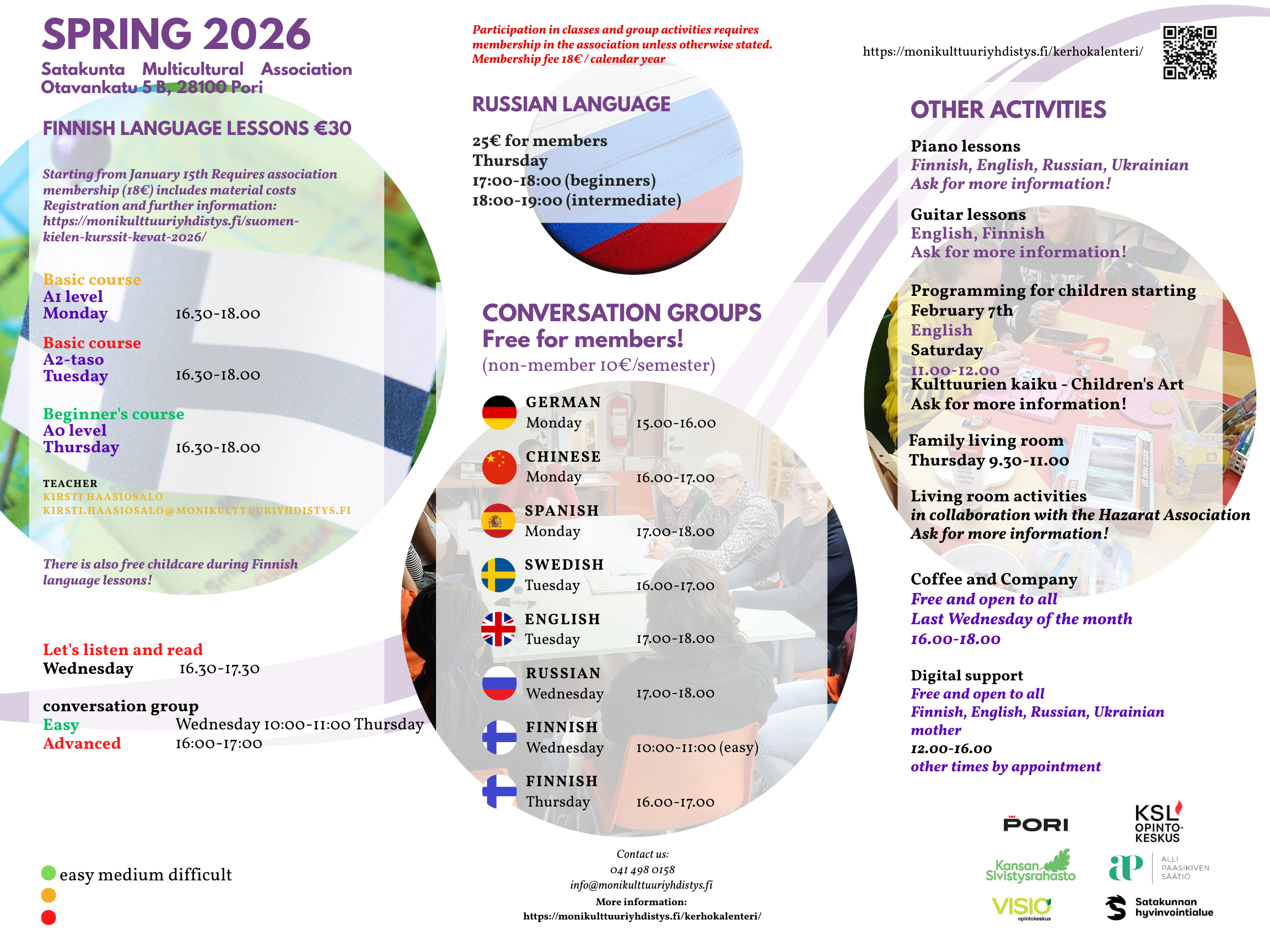 Payments: Satakunnan Monikulttuuriyhdistys ry IBAN: FI10 5700 0240 1249 43