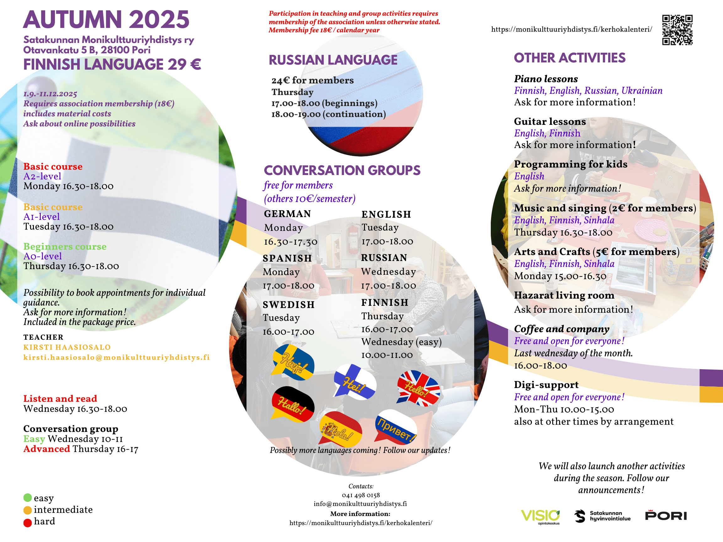 Payments: Satakunnan Monikulttuuriyhdistys ry IBAN: FI10 5700 0240 1249 43